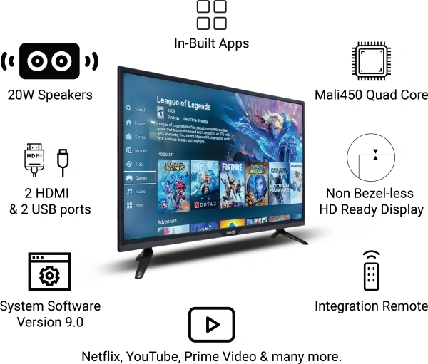 KMART 80 cm (32 inch) HD LED Smart TV Supported Apps: Netflix|Disney+Hotstar|Youtube Operating System: Android Based Resolution: HD Ready 1366 x 768 Pixels Sound Output: 20 W Refresh Rate: 60 Hz